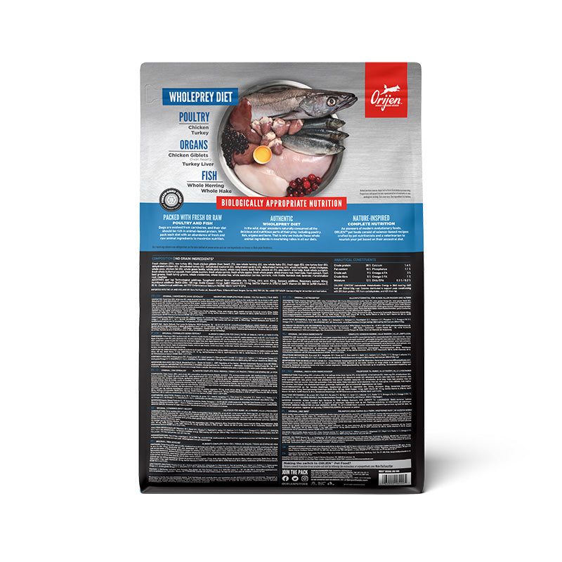 • With 38% richly nourishing protein and 85% quality animal ingredients, ORIJEN nourishes dogs of all breeds and life stages according to their evolutionary and biological needs