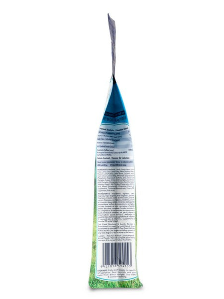 Ingredients: Mackerel, Lamb, Lamb Liver*, Lamb Tripe*, Lamb Heart*, Lamb Kidney*, Lamb Lung*, New Zealand Green Mussel, Lamb Bone, Inulin from Chicory, Dried Kelp, Sea Salt, Parsley, Minerals (Potassium Bicarbonate, Zinc Amino Acid Complex, Copper Amino Acid Complex, Selenium Yeast, Manganese Amino Acid Complex), Vitamins (Vitamin E Supplement, Vitamin B1 Supplement, Vitamin D3 Supplement, Folic Acid). Naturally preserved with mixed tocopherols. *Depending on seasonal availability will be temporarily substituted with sheep.